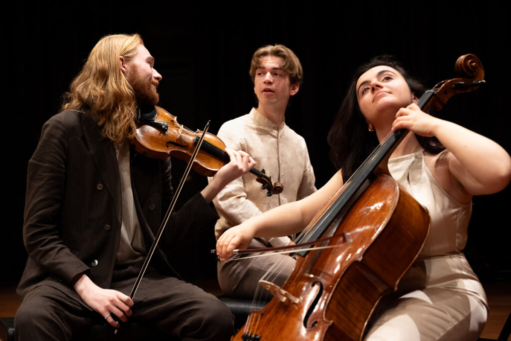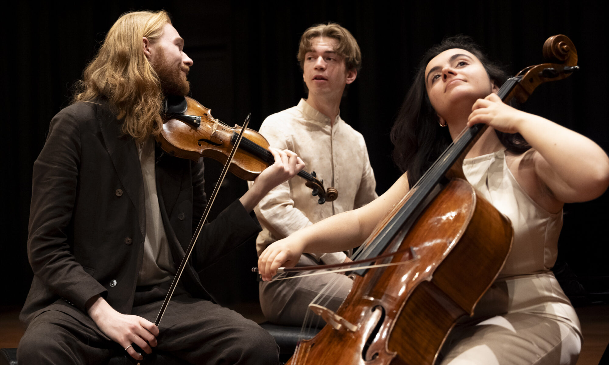 – Vi er en ung international trio bestående af Lara (22) på cello, Simen (22) på klaver og Villads (23) på violin. Vi mødtes i 2023 på Det Kongelige Danske Musikkonservatorium, hvor vi alle 3 studerer.